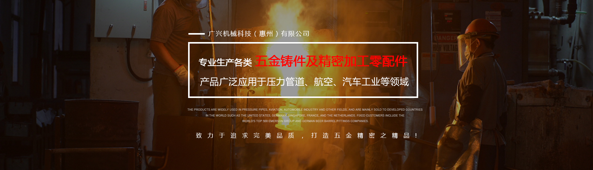 公司專業(yè)生產(chǎn)各類五金鑄件及精密加工零配件,可熔煉材質(zhì)為全系列不銹鋼及碳鋼,主要生產(chǎn)材質(zhì)有304、316316L17-4、430、409等,年生產(chǎn)各種不銹鋼鑄件1000余噸。產(chǎn)品廣泛應(yīng)用于壓力管道、航空、汽車工業(yè)等領(lǐng)域,主要銷往美國、德國、新加坡、法國、荷蘭等世界發(fā)達國家,固定客戶有世界500強艾默生集團及德國啤酒桶配件公司。